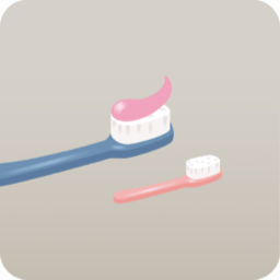 N | 大小のピンクと青の歯ブラシ |
